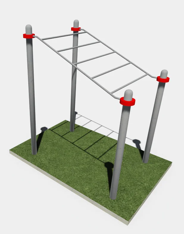 Рукоход состоит из 4-х вертикальных столбов и одной секции рукохода, которая расположена в подъем. Высота столбов 2000 мм и 2600 мм. Высота подъема 500 мм,( с высоты 1700мм до 2200 мм от поверхности основания) длина подъема 1932 мм. Расстояние между шагом рукохода 300 мм.